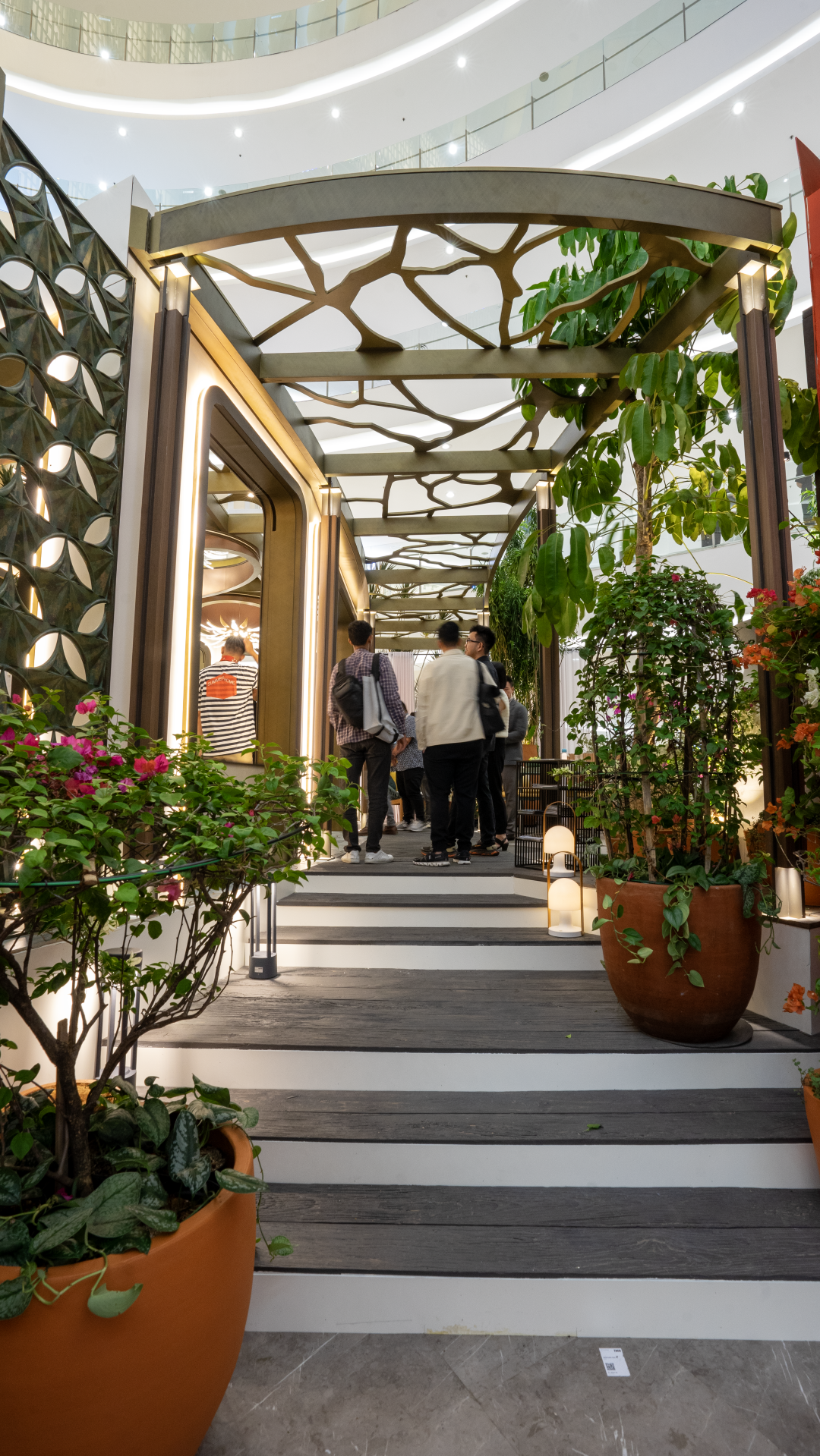 Kemudian di area Prasetyo Budi yang disebut “La Lucciola: Outdoor Lounge”, kami menyumbangkan dua produk utama: Decking Solid dalam warna Amber dan Louver dalam warna Walnut . Nuansa amber yang hangat dari decking berfungsi sebagai fondasi untuk lounge, sangat cocok dengan suasana tropis dan luar ruangan serta menciptakan ruang yang nyaman dan mengundang untuk bersantai. Sementara itu, louver berwarna walnut menambahkan elemen bertekstur yang kaya, memberikan desain yang lebih dalam dan berkarakter. Bersama-sama, elemen-elemen ini memberikan lounge nuansa elegan dan nyaman yang seimbang, tetap setia pada konsep tempat peristirahatan yang menenangkan.